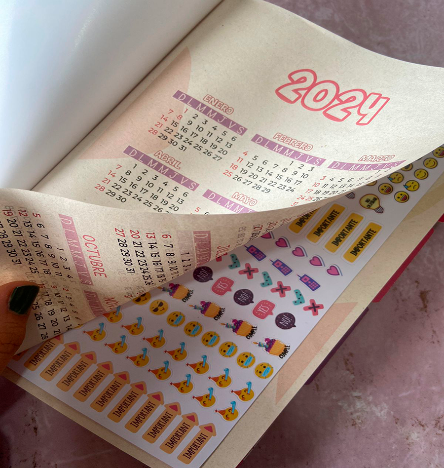 Transforma tu día a día con nuestra agenda argollada ¡Dale vida a tus ideas! Con nuestra agenda personalizada con stickers, planeador y calendario.