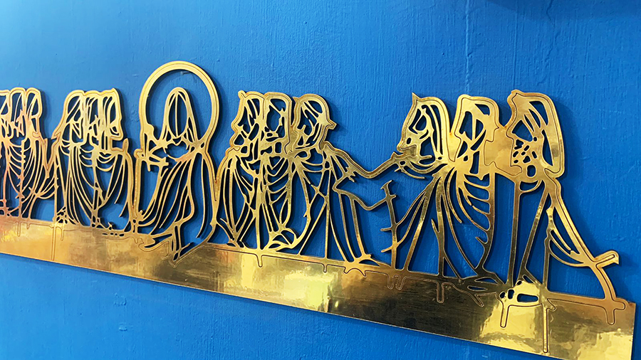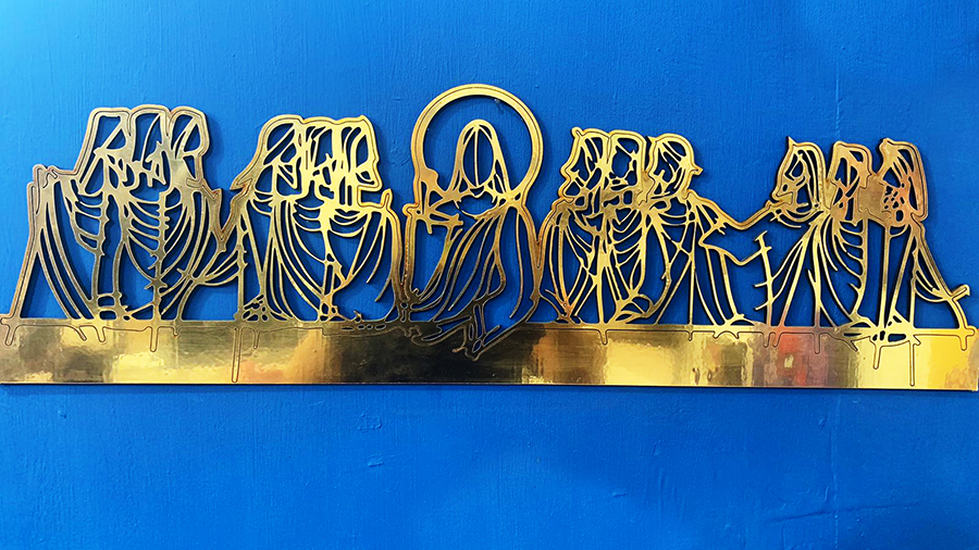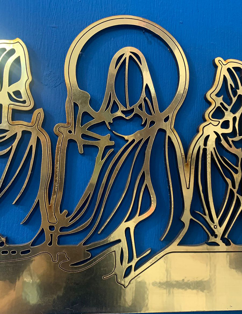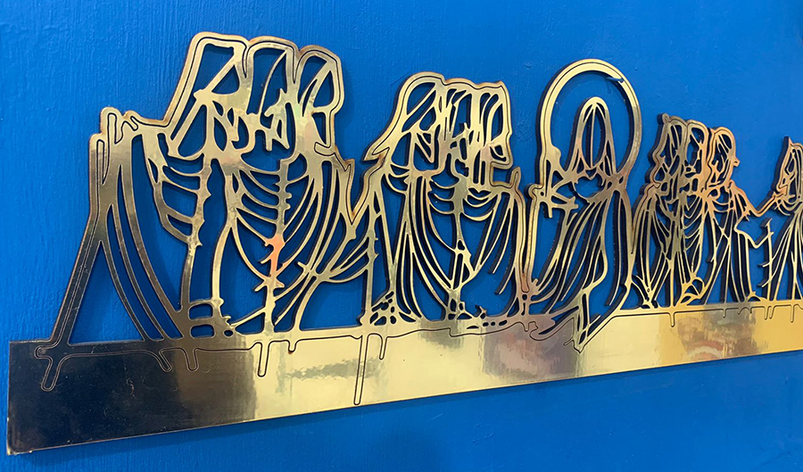 Figura geométrica ULTIMA CENA de 70cm en Corte láser madera MDF 3mm laminada en vinilo dorado, plateado, ororosa,